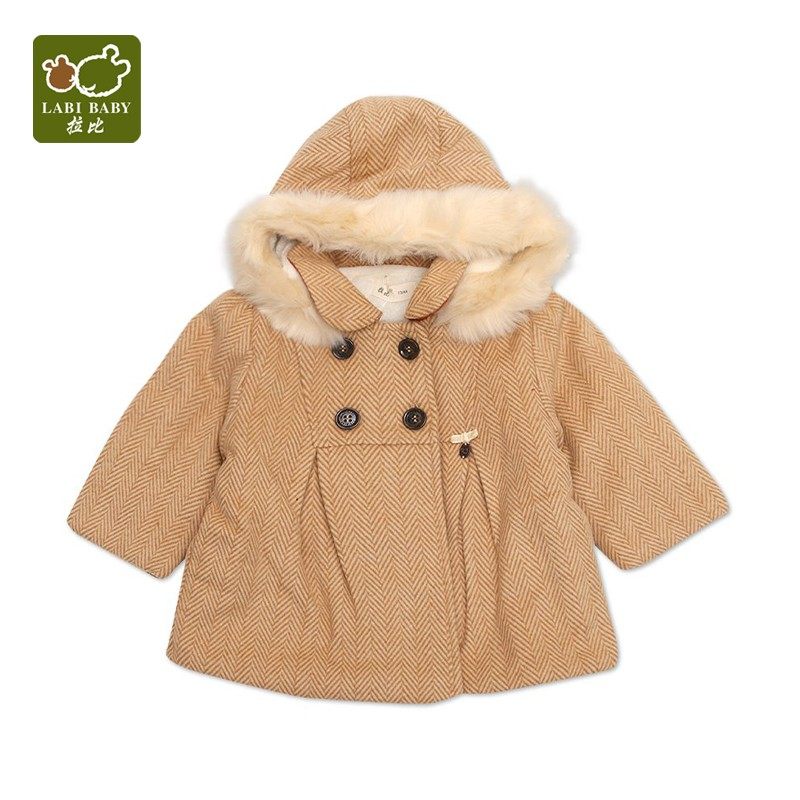 拉比童装同款婴幼儿毛呢外套冬季女宝宝带帽防风加绒棉袄上衣06折