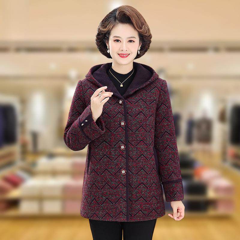 中老年人女奶奶秋冬毛呢大衣妈妈冬装外套带帽老人老太太衣服秋冬