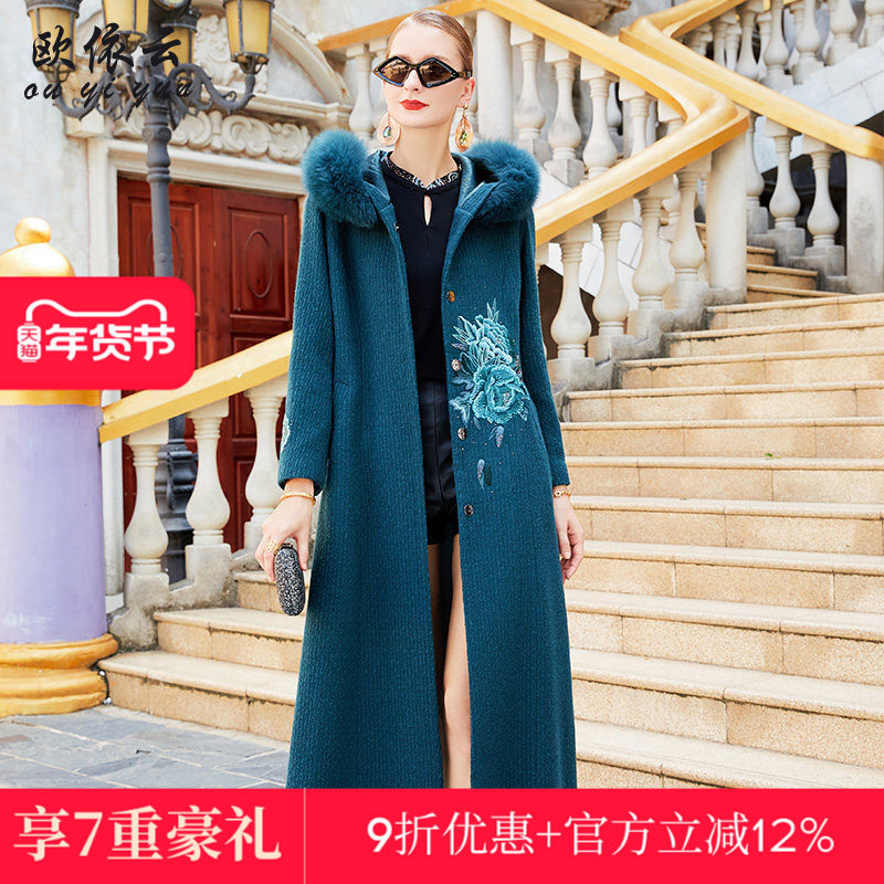 欧依云中年妈妈秋冬毛呢外套大毛领洋气显瘦羊毛大衣带帽女2025款