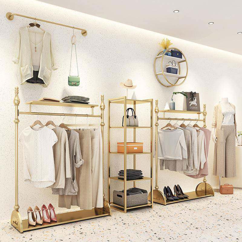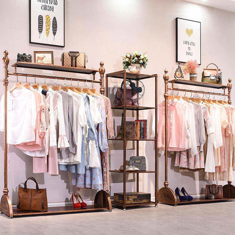 欧式铁艺复古服装架落地式服装店衣架展示架挂衣架女装店金古铜色