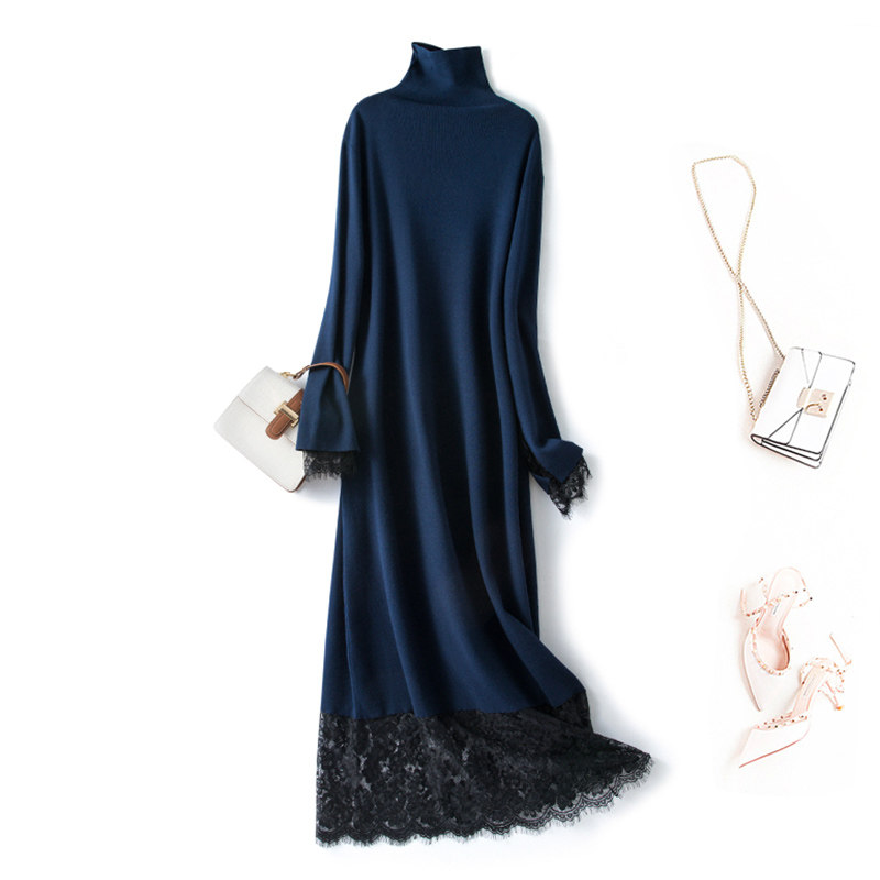 - 长款毛衣女秋冬连衣裙