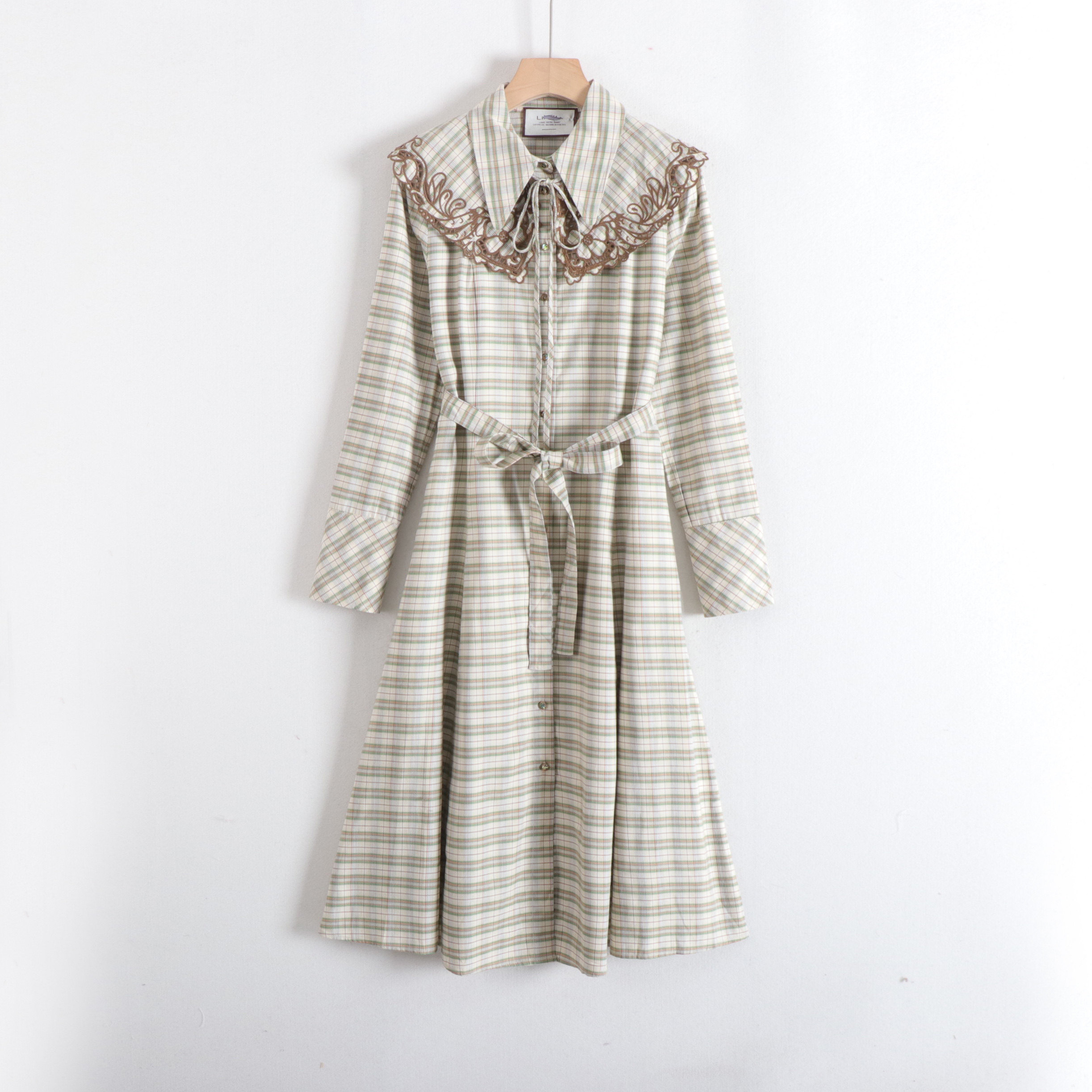 丽系列刺绣披肩减龄收腰修身英伦格子长款衬衫裙连衣裙26春装新款