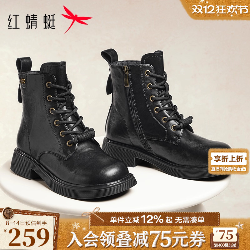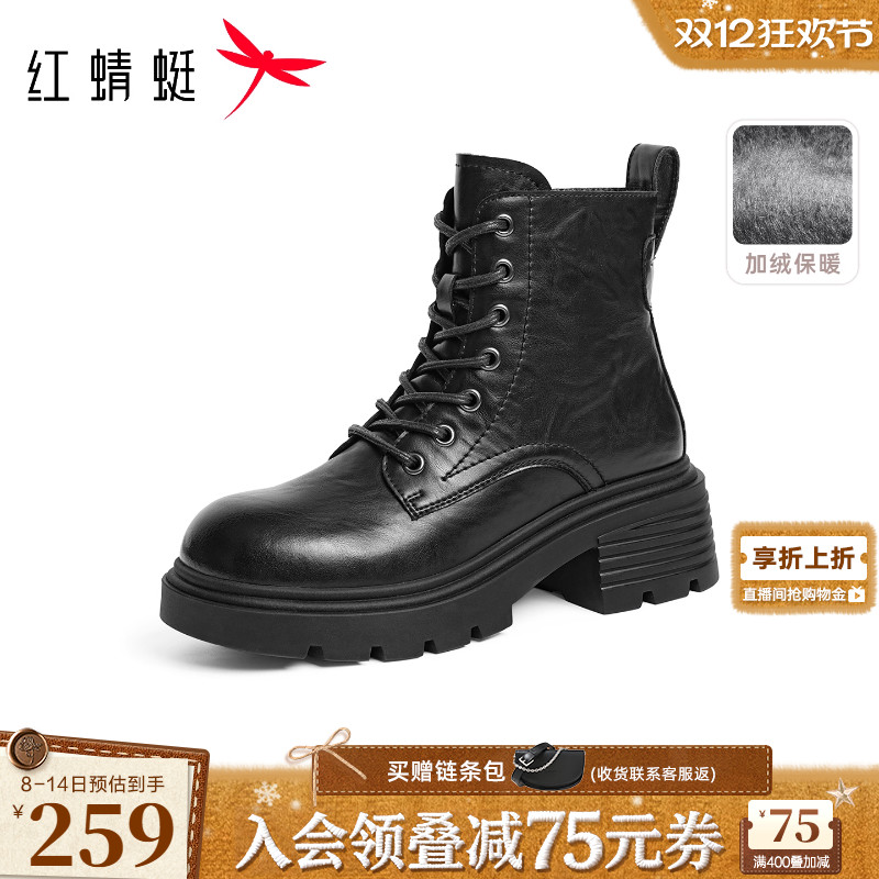红蜻蜓马丁靴2025秋季新款女鞋英伦复古厚底机车靴通勤单靴短靴