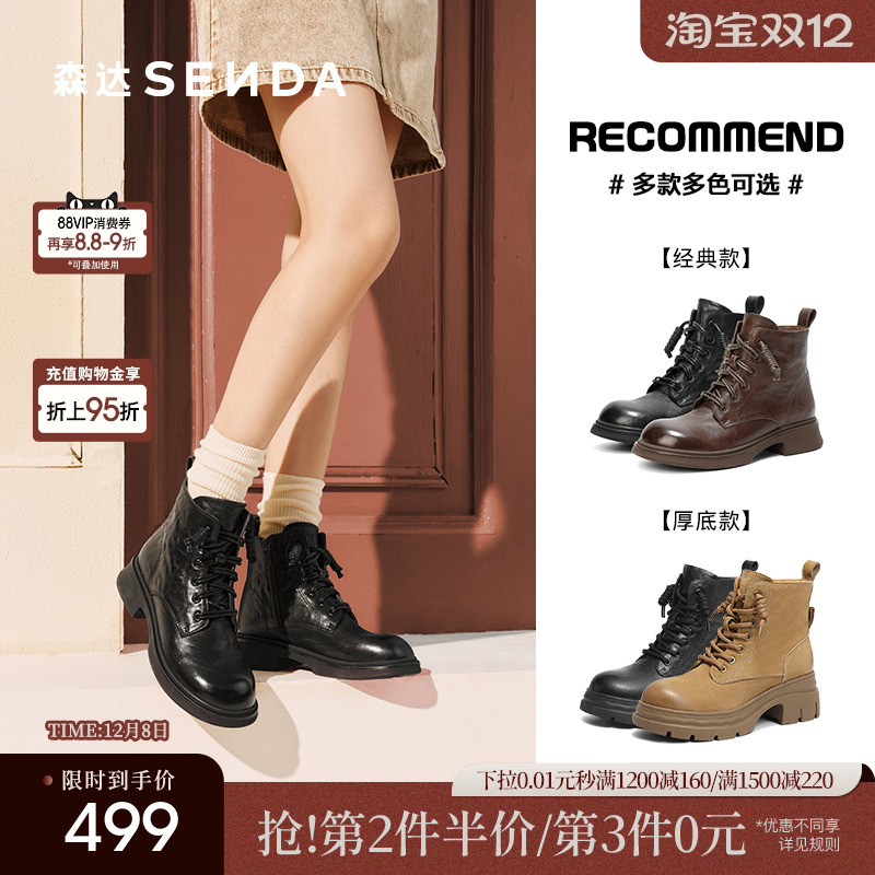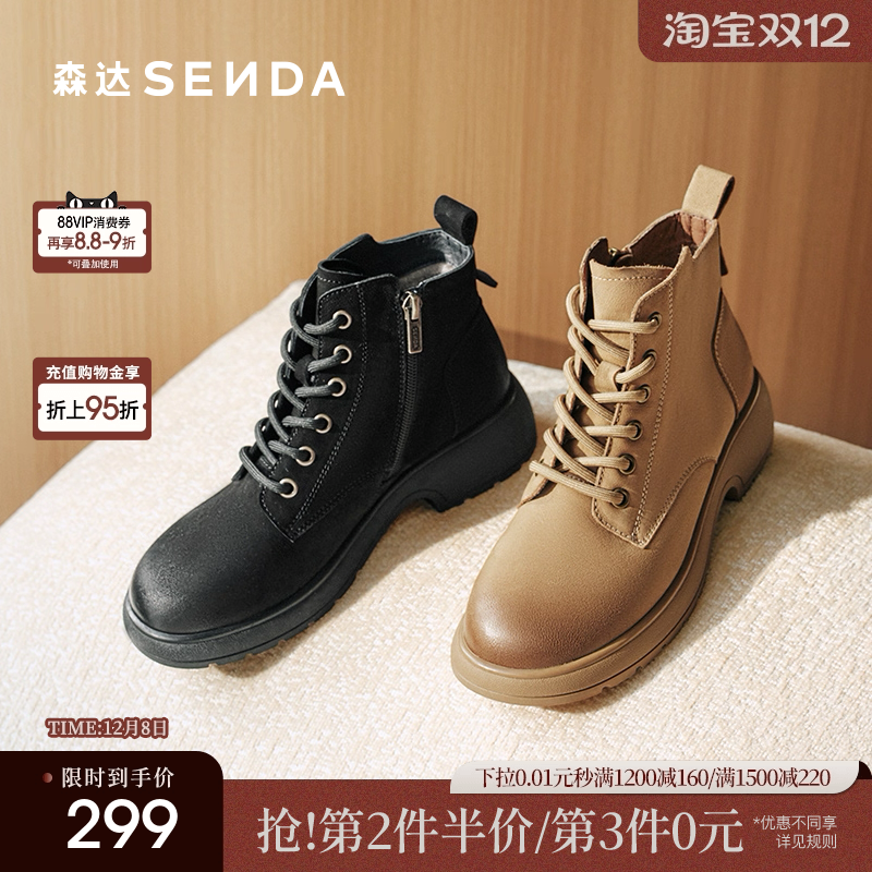 森达马丁靴女鞋冬款商场同款超软羊皮厚底机车风休闲短靴XCM01