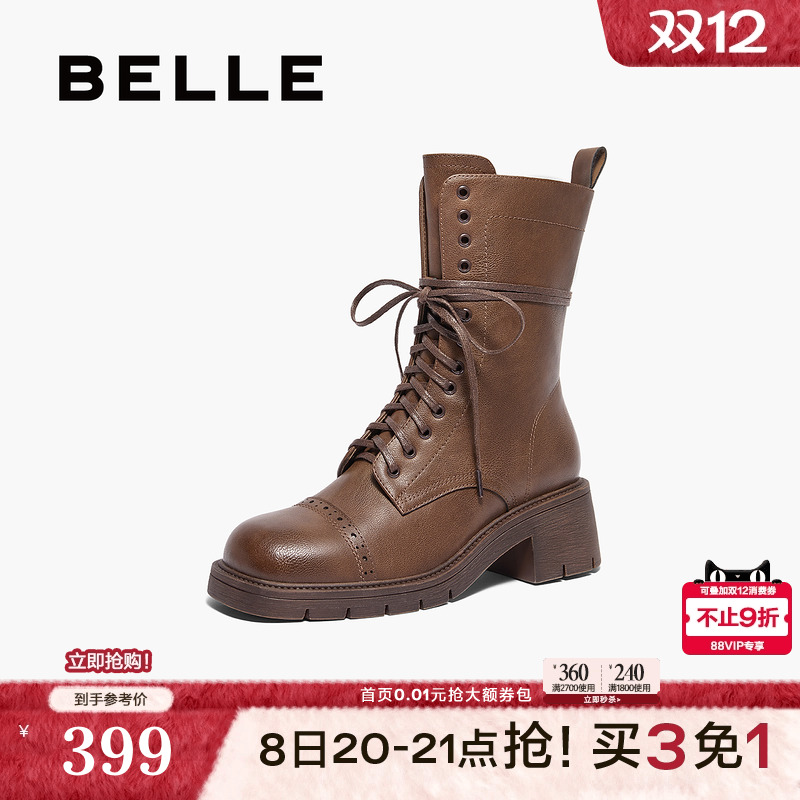 百丽英伦风复古马丁靴女冬季新款机车美拉德西部短靴B8H1DDZ4