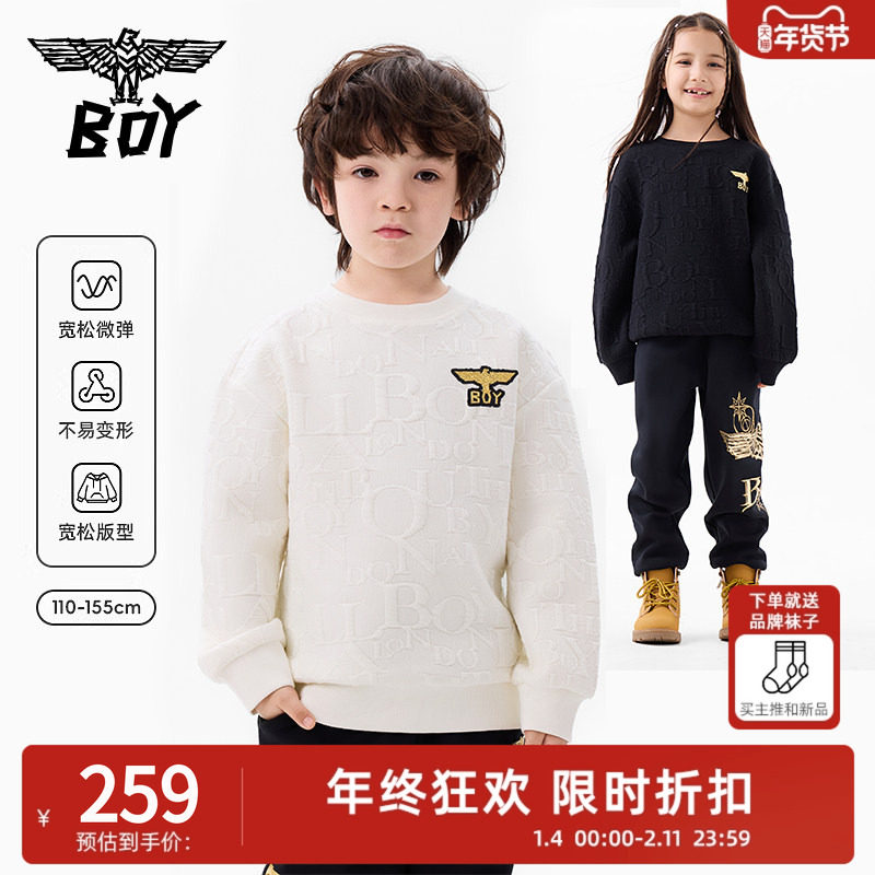 BOY童装 春秋满印提花卫衣 百搭圆领黑白色套头上衣男女童中大童