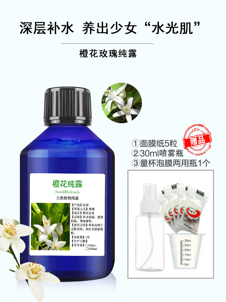 苦橙花纯露 透亮补水 头道饱和鲜花铜锅蒸馏正品喷雾湿敷水500ml