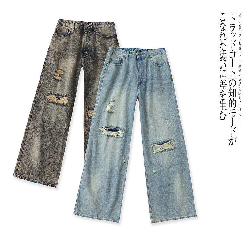 - 阔腿裤秋冬牛仔