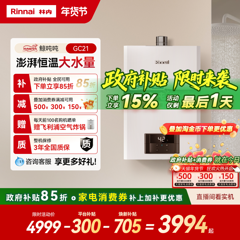 - 林内燃气热水器 天然气