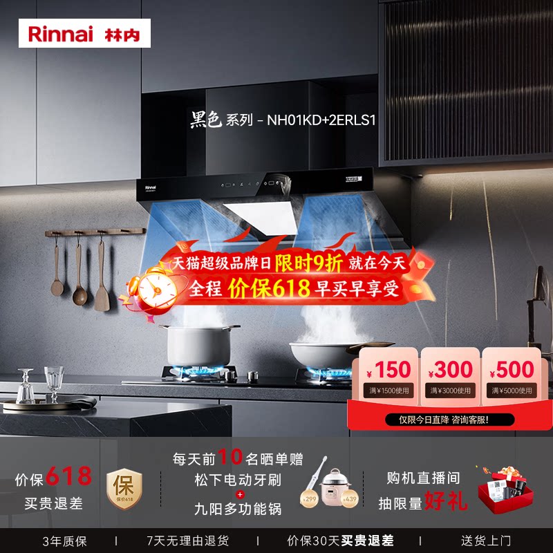 【黑色套装】林内Rinnai官方家用抽油烟机 灶具 套装店铺主推款