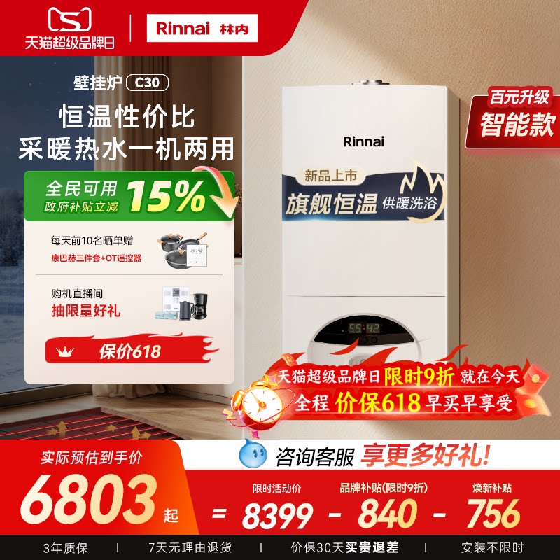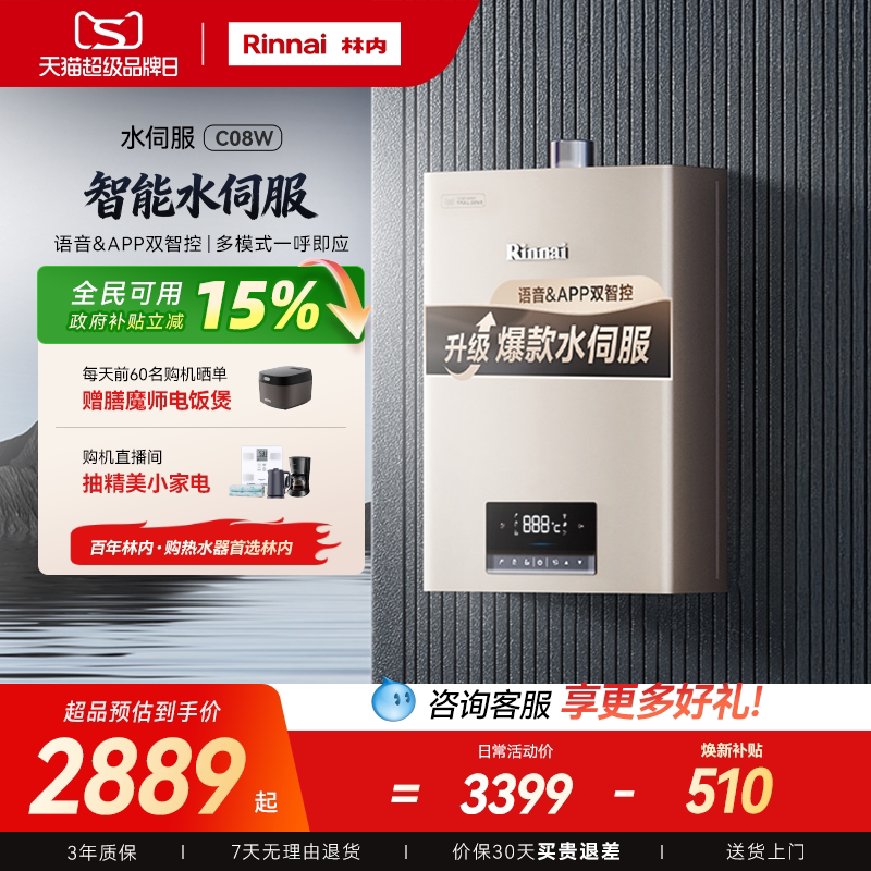 [智能水伺服爆款]林内燃气热水器恒温天然气家用13升16升C08W