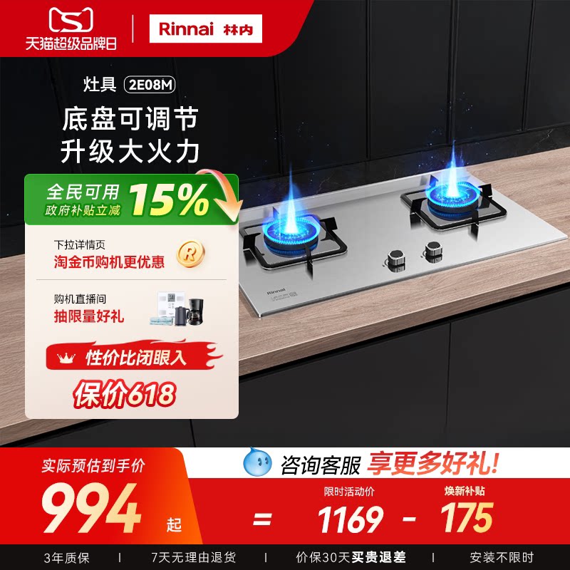 林内Rinnai燃气灶定时家用嵌入台式天然气08MTX升级聚能盘Q2/QT2