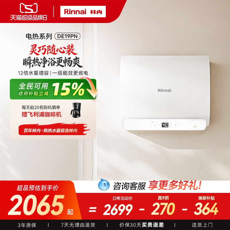 [新品电热]林内电热水器家用速热储水式免换镁棒60升DE19PN