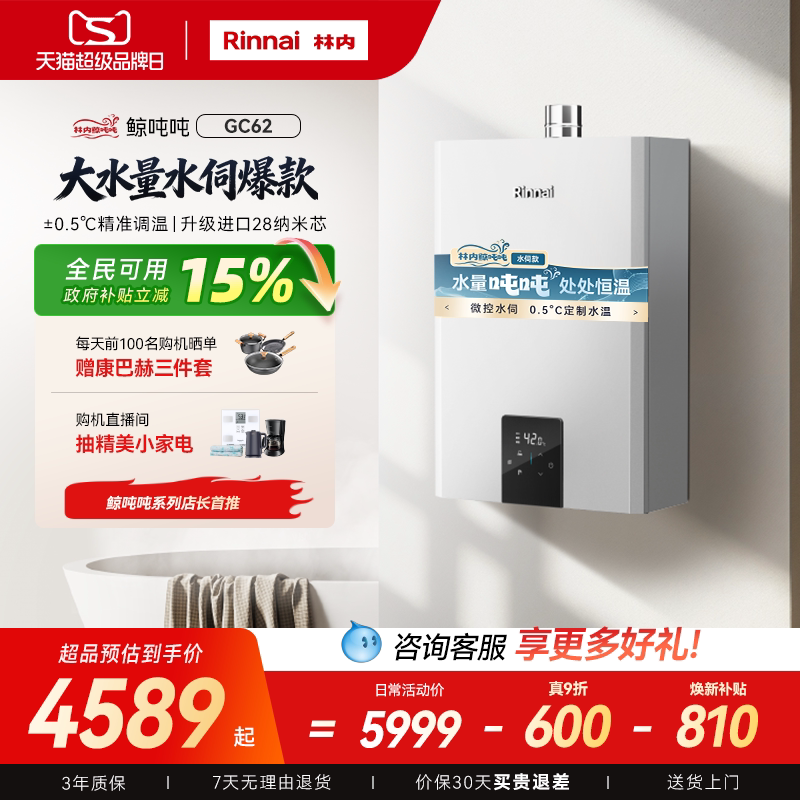 [鲸吨吨水伺服]林内燃气热水器小蛮腰Max0.5微控恒温20/24升GC62