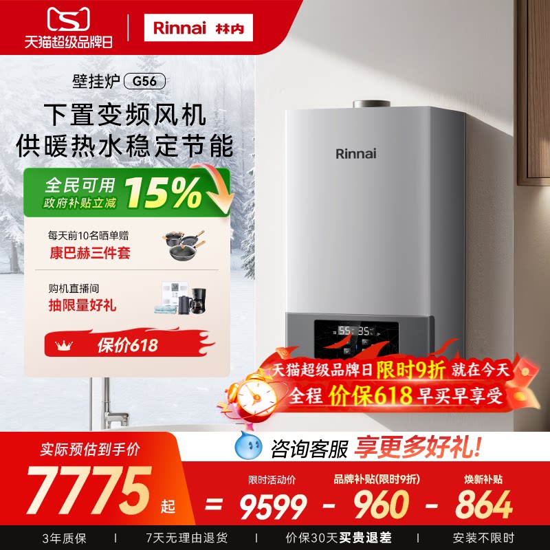 林内燃气壁挂炉家用采暖热水两用天然气一级能效冷凝地暖锅炉Q55A