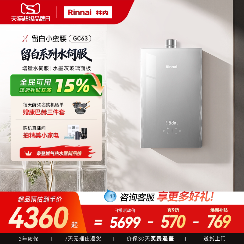 [增量水伺服]林内留白燃气热水器GC63家用天然气16/20升恒温速热