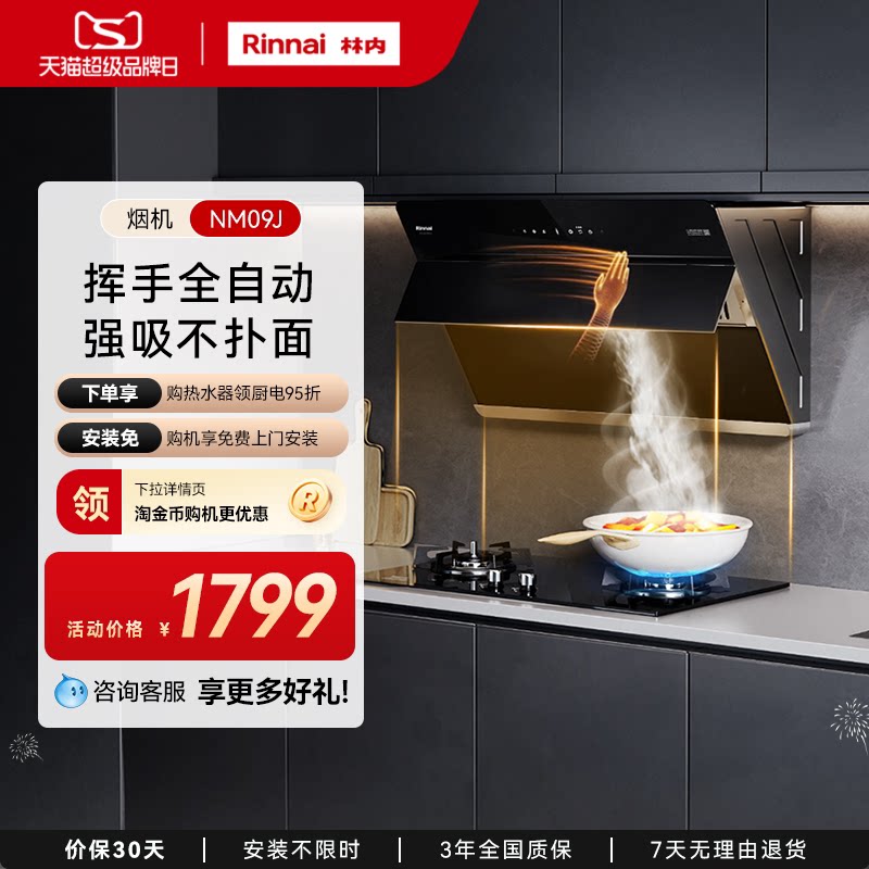 林内Rinnai抽吸油烟机家用大吸力挥手自清洁侧吸式NM09J