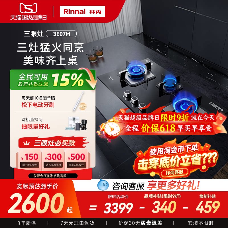林内Rinnai官方家用天然气炉灶台式三眼燃气灶3E07/8M