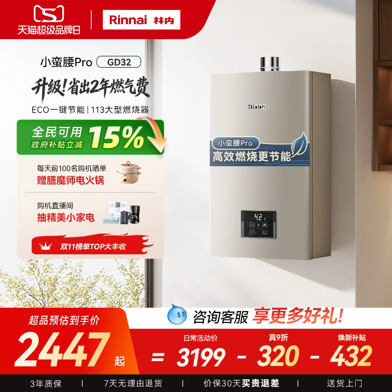 林内小蛮腰Pro燃气热水器小尺寸天然气GT11恒温GD32换新补贴 152