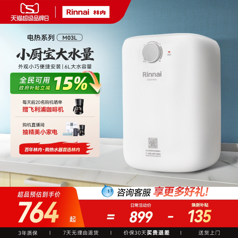政府换新补贴林内M03L 上出水速热小厨宝6L电热水器 家用储水式