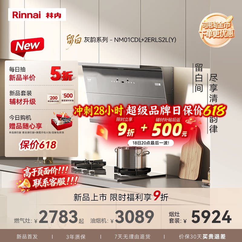 【留白套装】林内Rinnai官方家用抽油烟机 灶具 套装店铺主推款