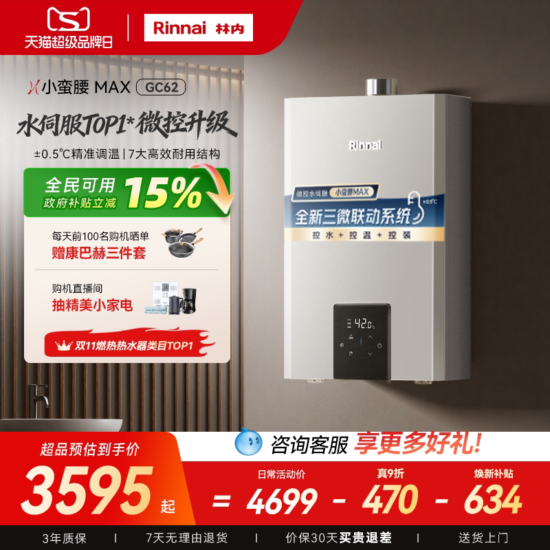 [小蛮腰MAX水伺服]林内燃气热水器GC62家用天然气13/16/20升恒温