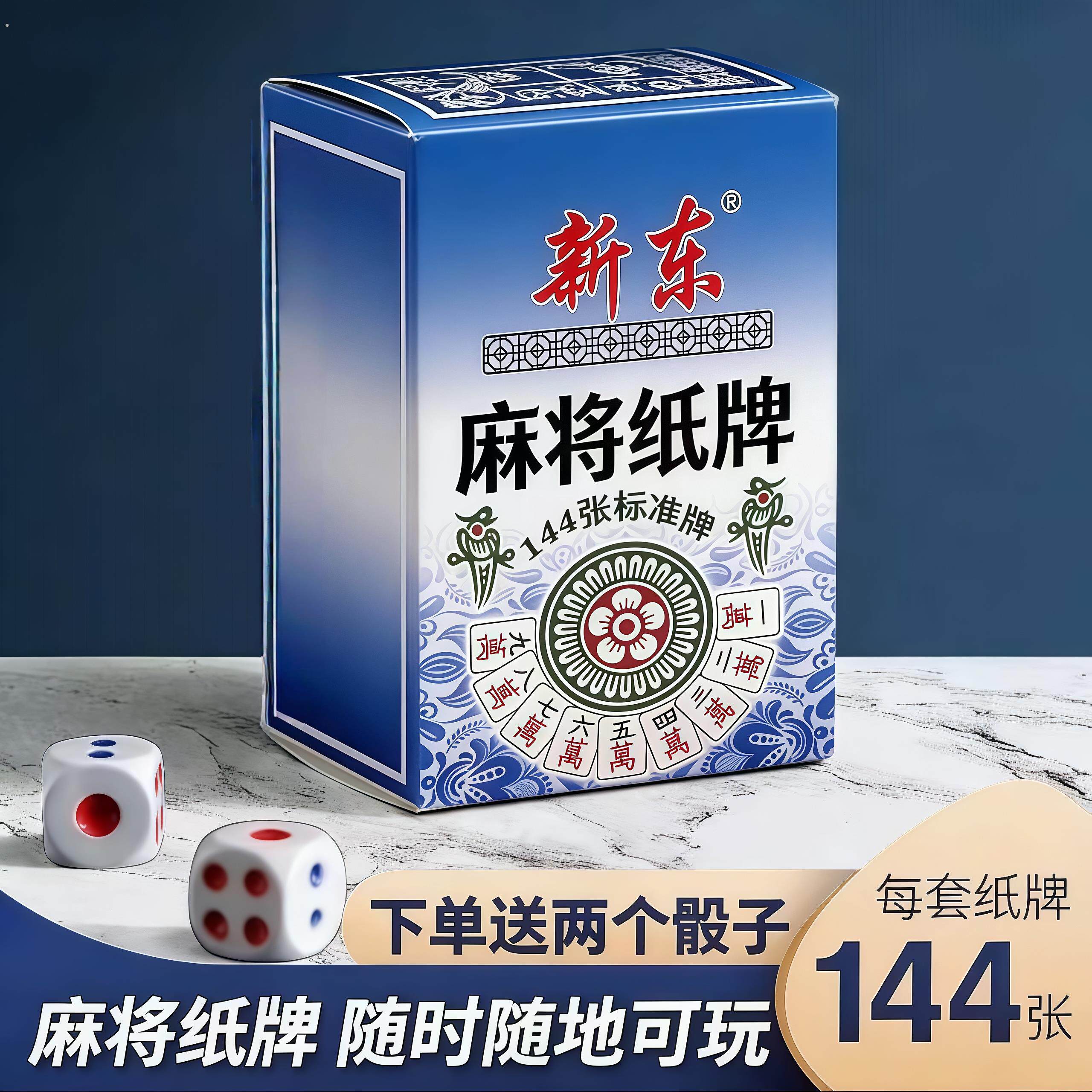 潮风盒装纸牌麻将扑克牌塑料加厚pvc144张便携旅行家用迷你麻将牌