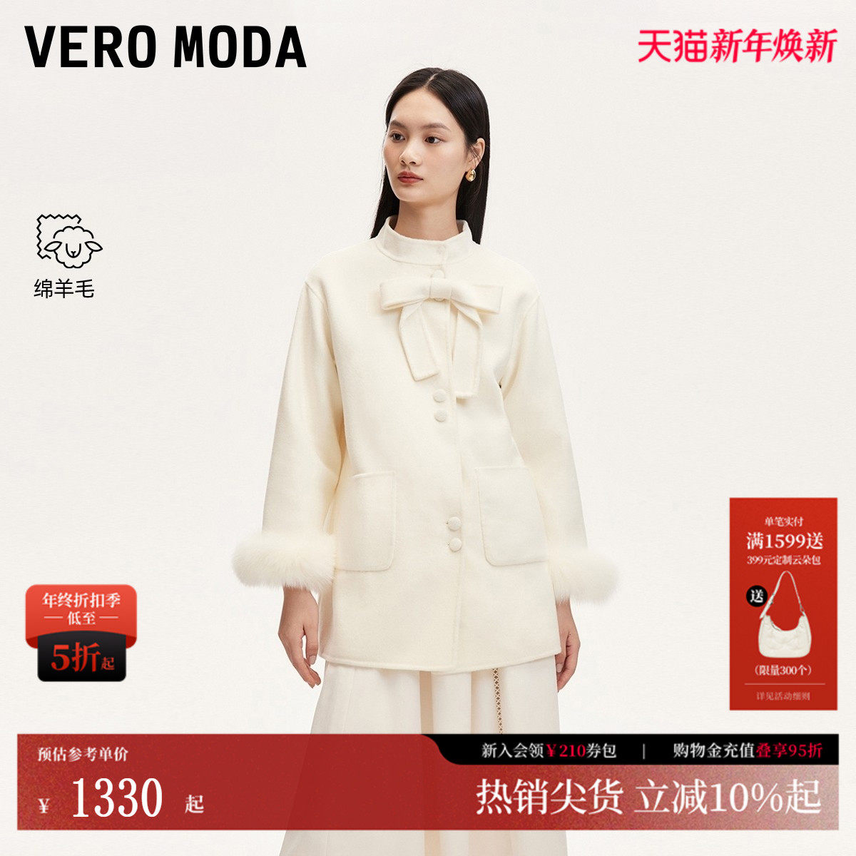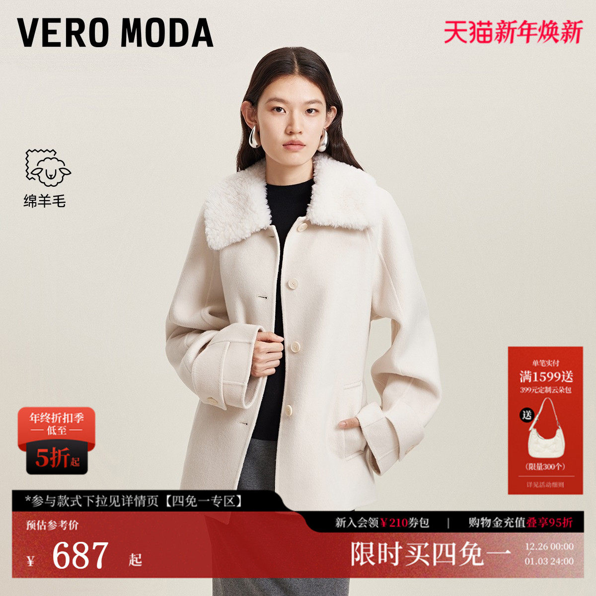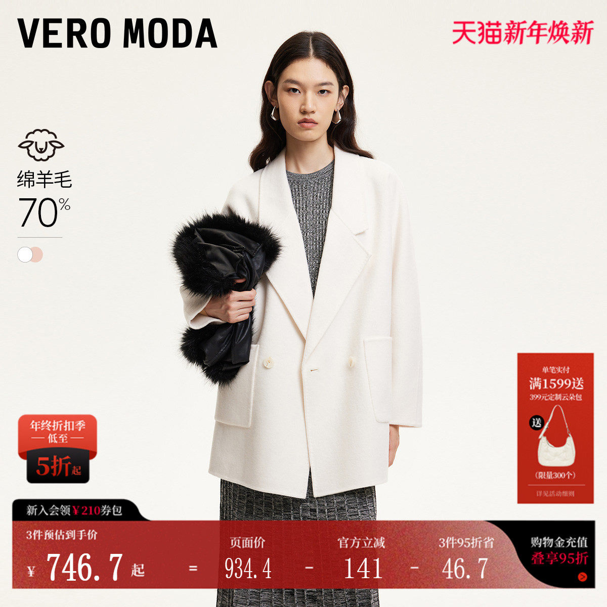 Vero Moda毛呢大衣女2025冬新款狐狸毛领双面呢纯绵羊毛简约静奢