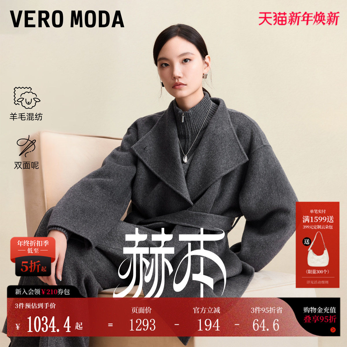 Vero Moda毛呢大衣2025冬季新款腰带纯绵羊毛双面呢外套32544S019