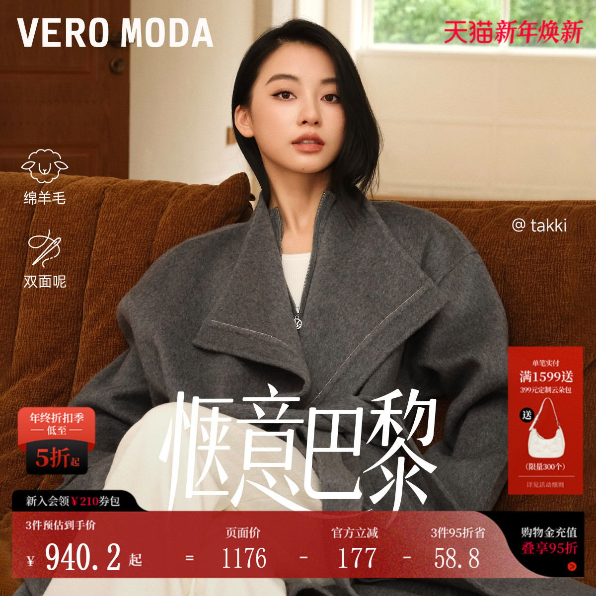 【惬意巴黎】Vero Moda毛呢大衣2025秋冬新款纯绵羊毛双面呢千金