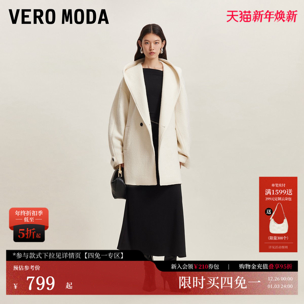 Vero Moda毛呢大衣2026春季新款疗愈绒感含绵羊毛连帽落肩中长款