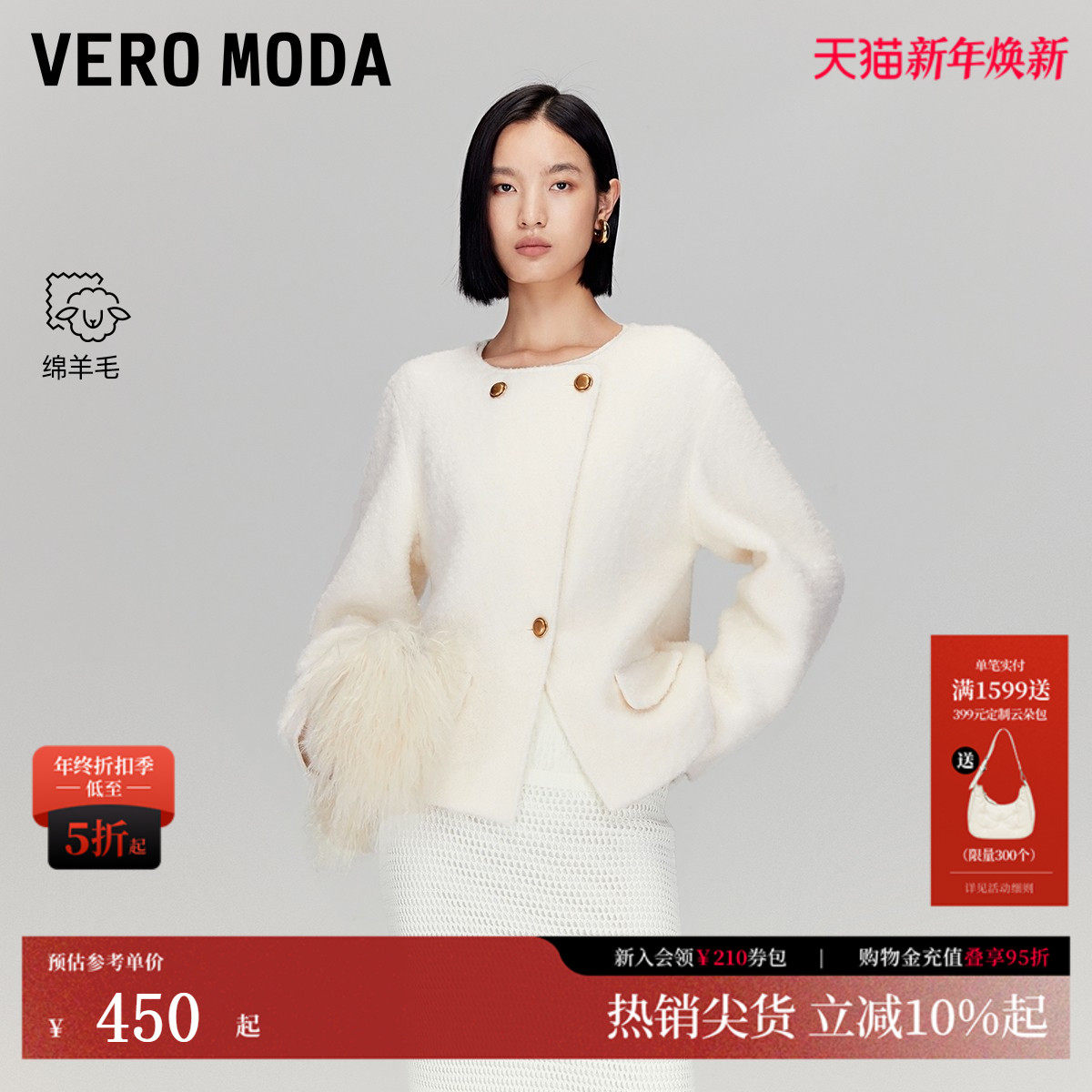 Vero Moda毛呢大衣女2025秋冬新款含绵羊毛兔毛疗愈绒感32544S012