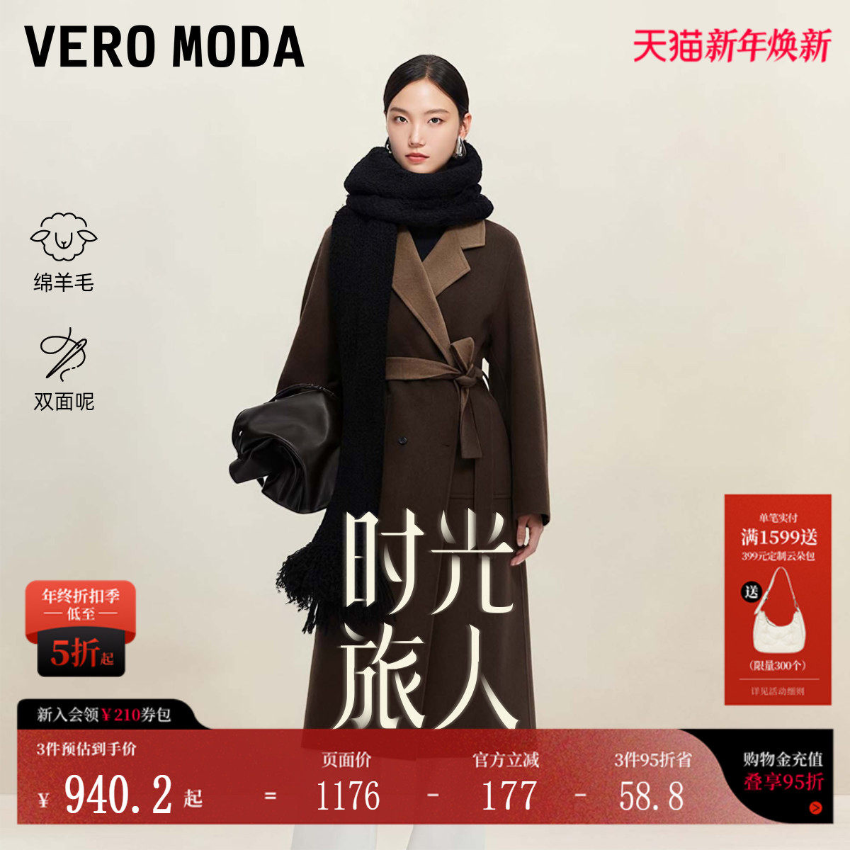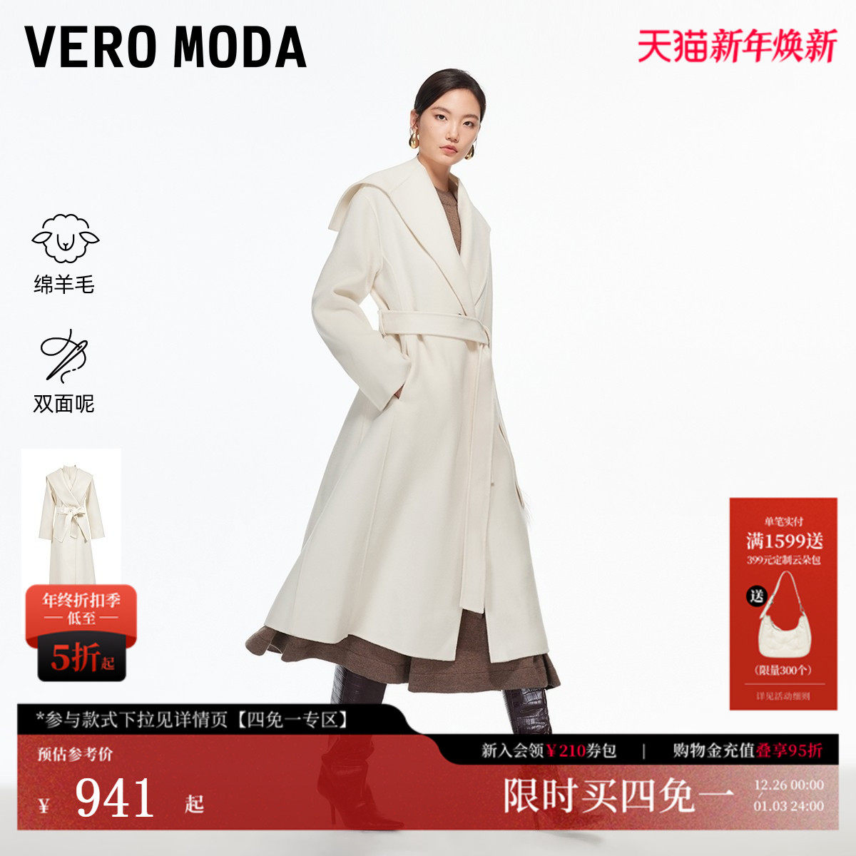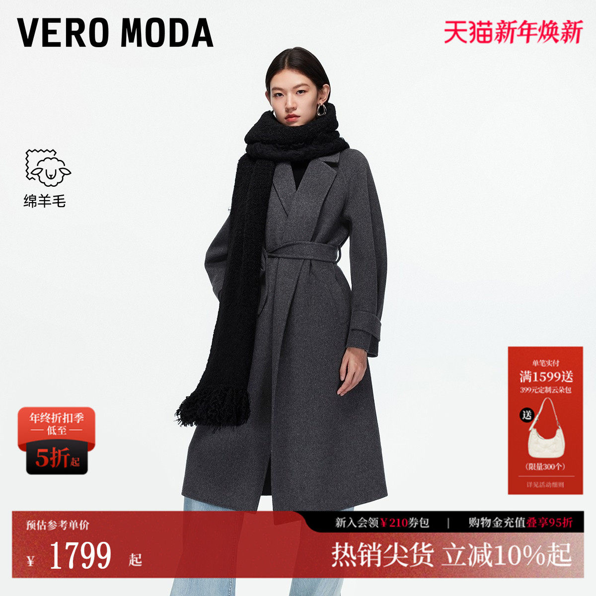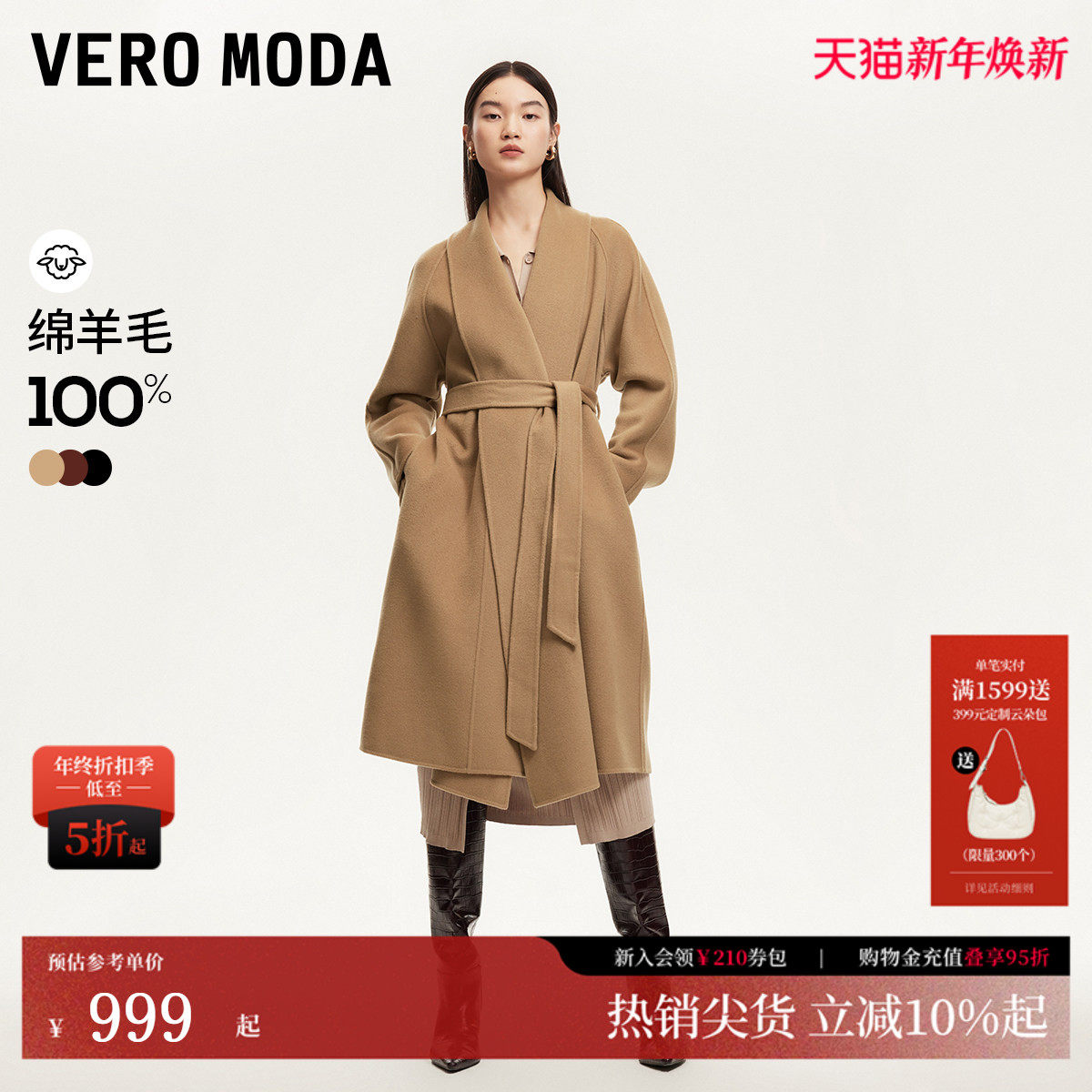 Vero Moda毛呢大衣2025冬季新款纯绵羊毛腰带双面呢长款32544S005