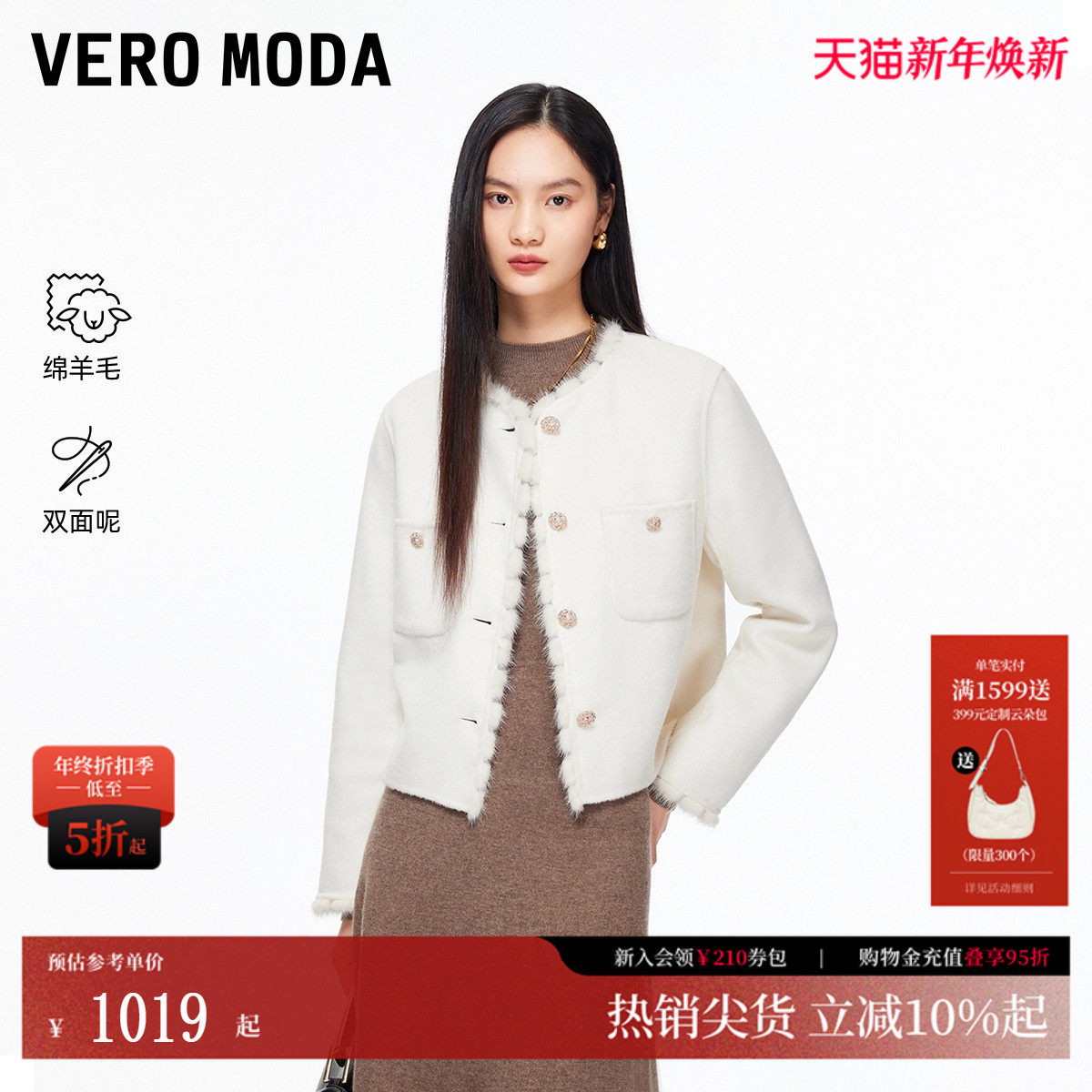 Vero Moda毛呢大衣2025冬季新款含绵羊毛双面呢毛边外套32544T001