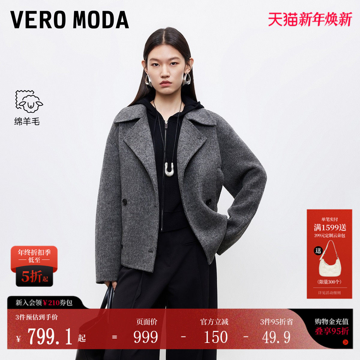 Vero Moda毛呢大衣2025秋冬新款纯绵羊毛外套老钱风32534S001