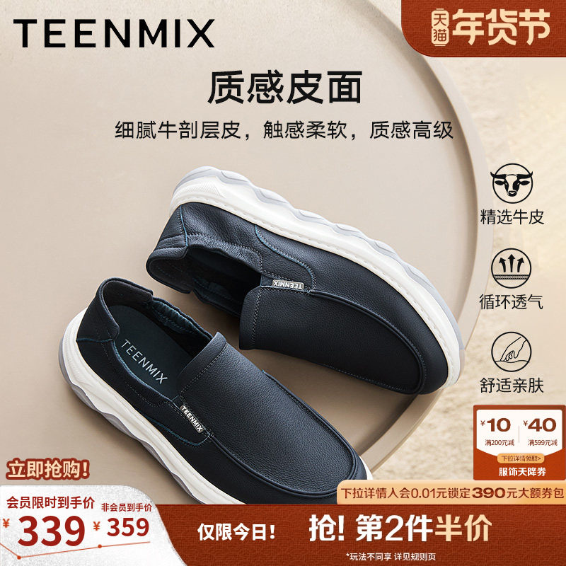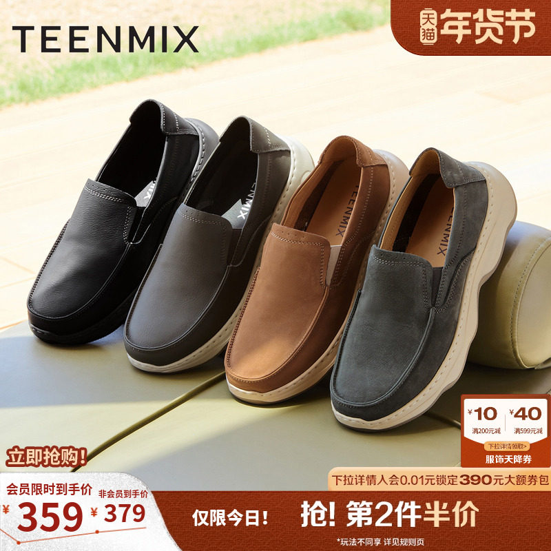 天美意牛皮男鞋厚底布鞋休闲皮鞋运动鞋男士软底鞋子2025冬季新款
