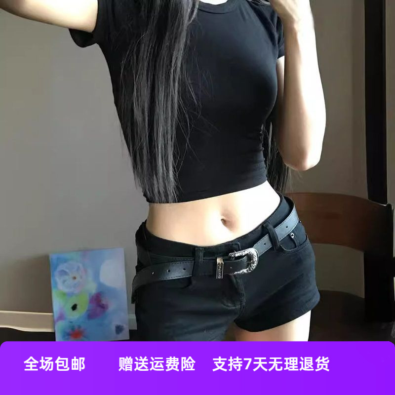 裤子亚文化热裤牛仔低腰轻黑色美式辣妹潮y2k弹力超短裤女夏包臀