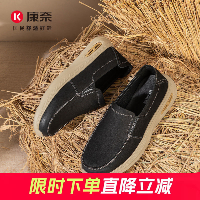 康奈男鞋春秋新款厚底皮鞋休闲鞋户外软底轻便懒人鞋一脚蹬乐福鞋
