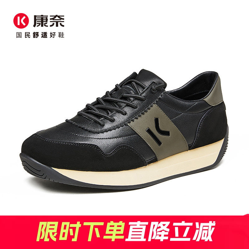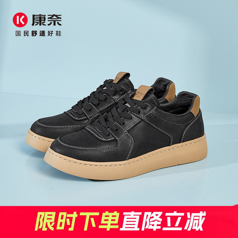 康奈男鞋春季潮流复古男士休闲皮鞋真皮运动鞋子软底黑色通勤男鞋