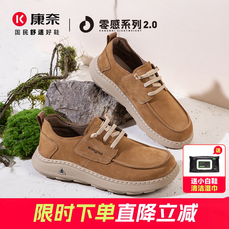 康奈男鞋2026春秋新款户外工装鞋复古轻便真皮休闲系带轻质袋鼠鞋