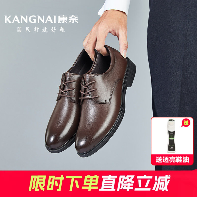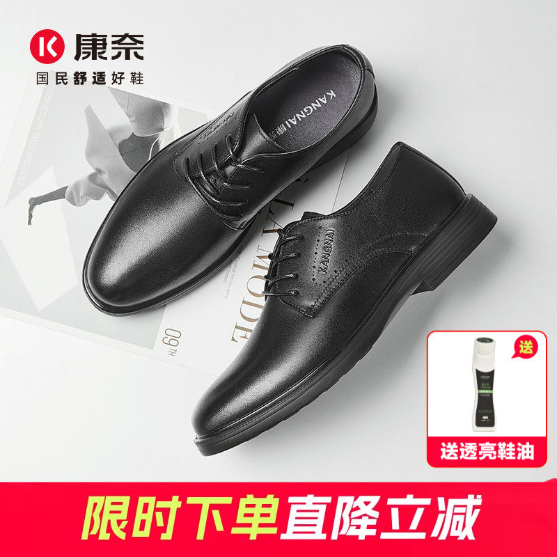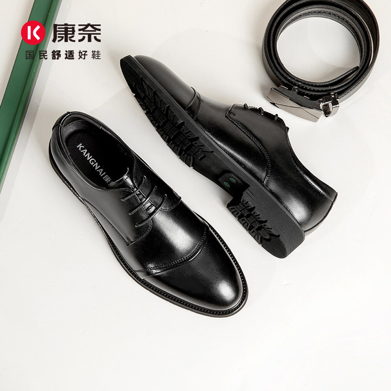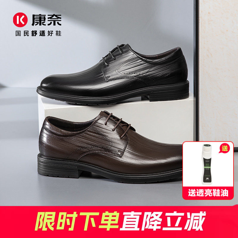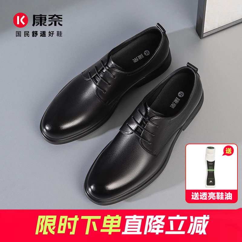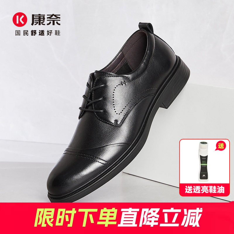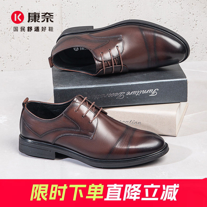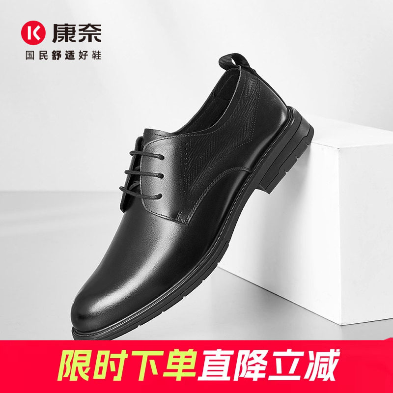 康奈男鞋春季新款商务正装皮鞋英伦通勤头层牛皮男系带通勤德比鞋