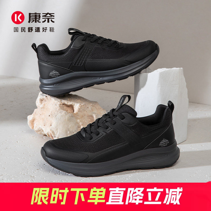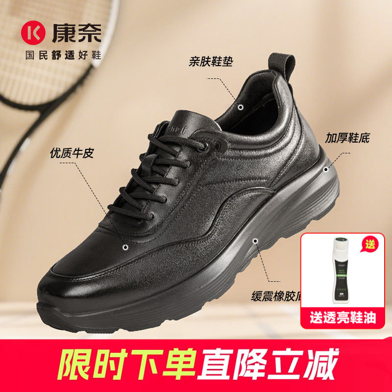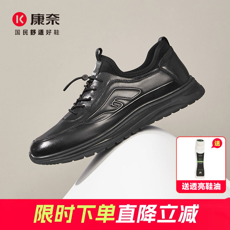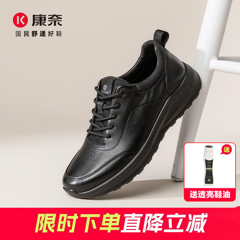 康奈男鞋真皮商务休闲皮鞋男运动全黑软底公务鞋男士上班通勤健步