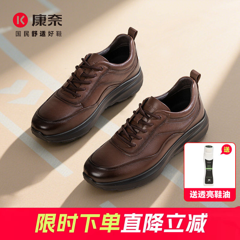 康奈男鞋春秋新款休闲皮鞋男软底舒适运动户外健步鞋商务轻便棕色