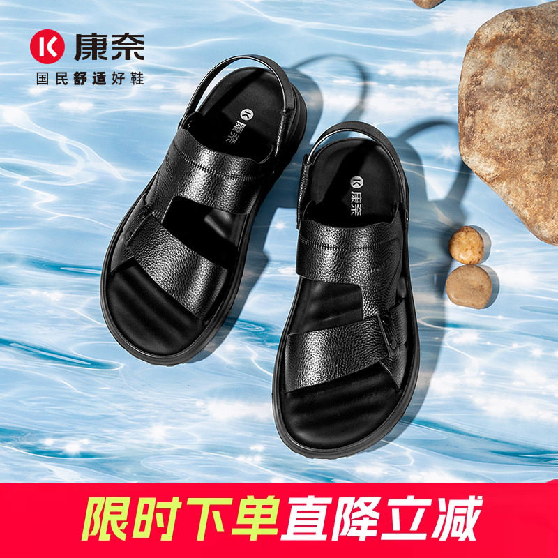 康奈凉鞋男复古夏季真皮男士凉拖鞋外穿两用中老年凉鞋男款沙滩鞋