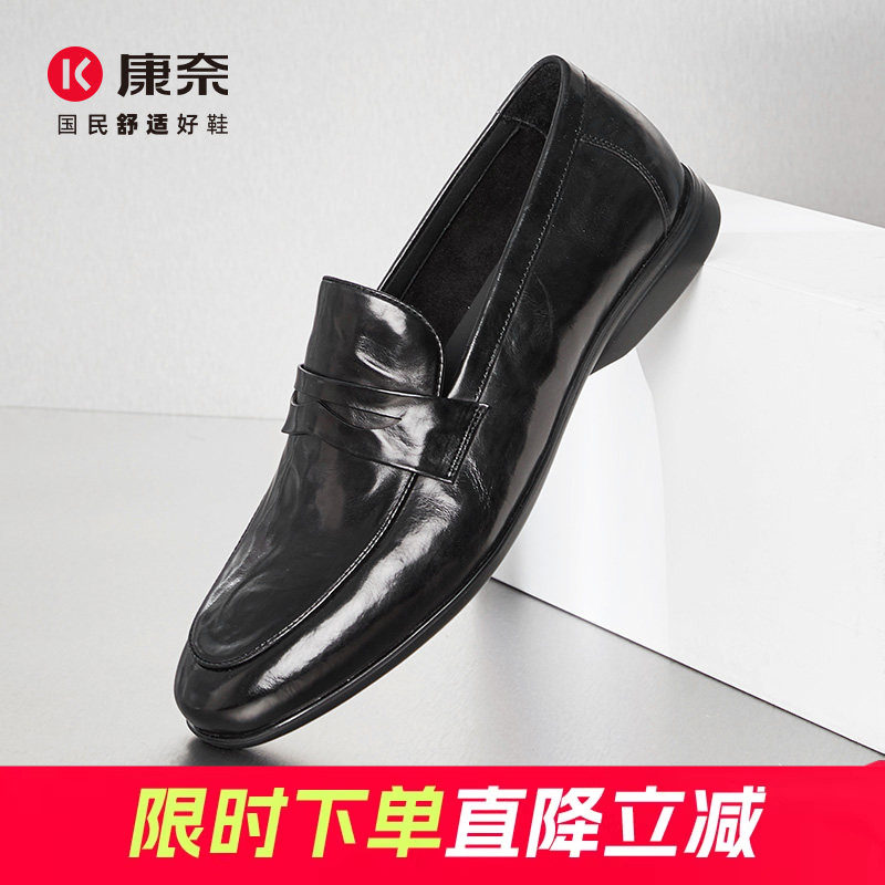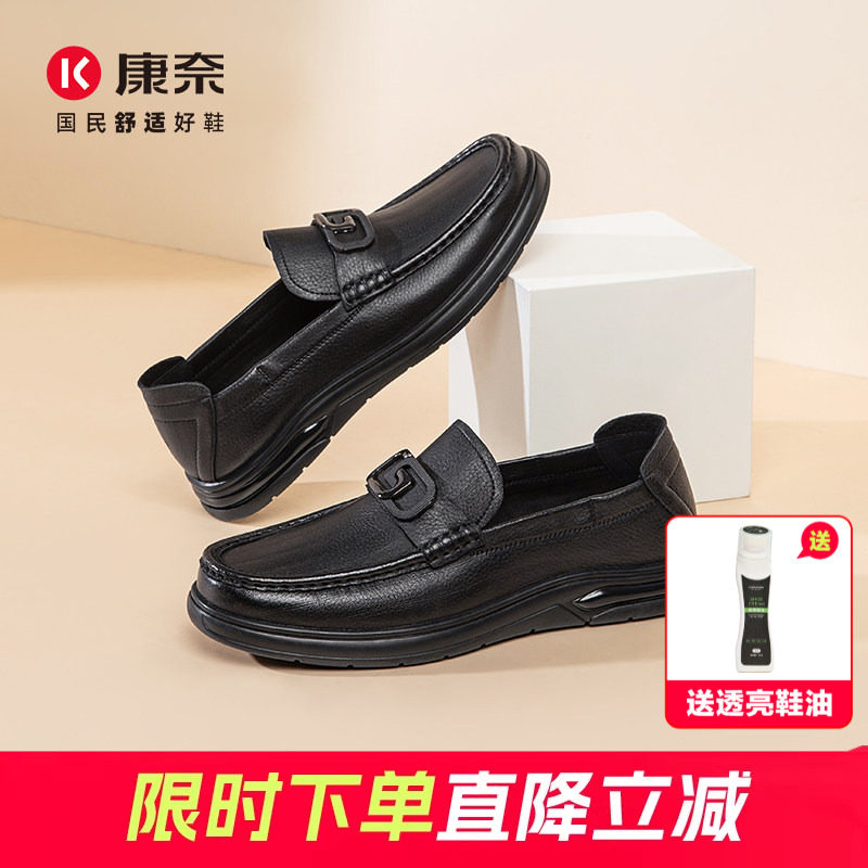 康奈男鞋春秋新款商务正装皮鞋休闲男真皮软底舒适轻质一脚蹬单鞋