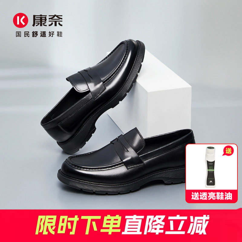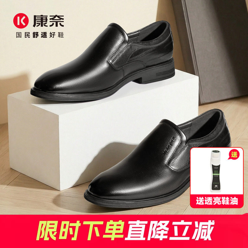 康奈男鞋2026春秋新款正装皮鞋青年真皮轻质一脚蹬通勤商务德比鞋