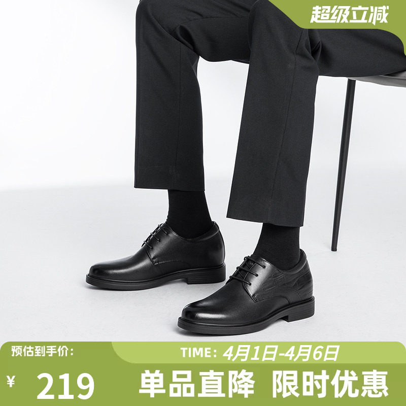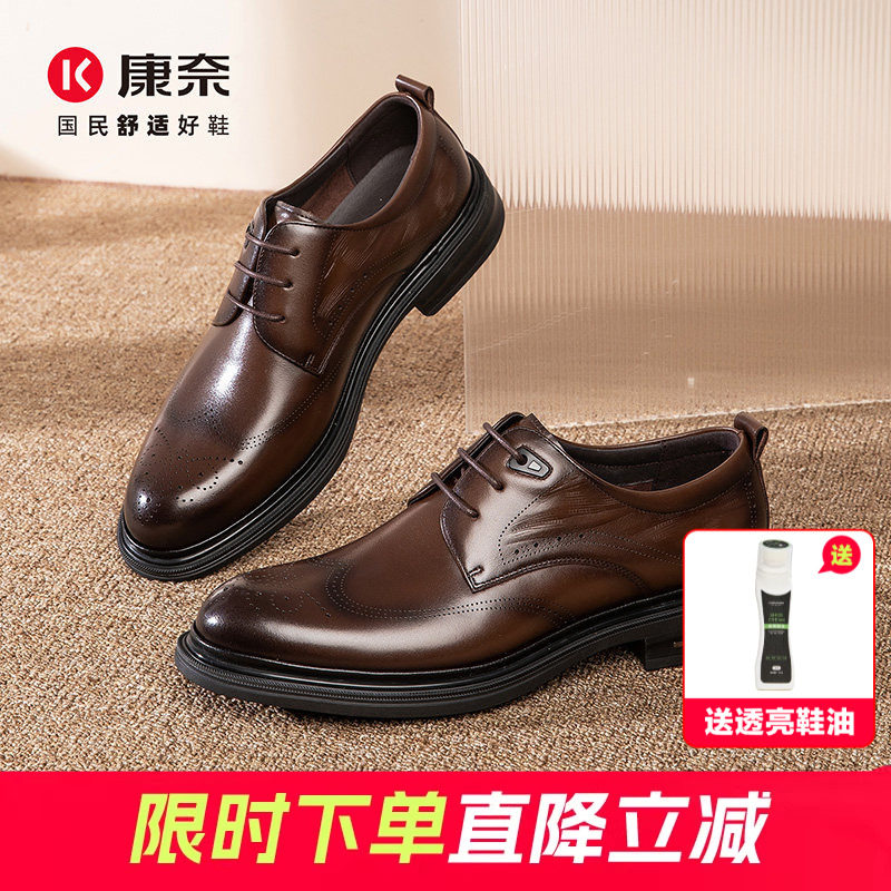 康奈头层牛皮男鞋2025新款商务正装皮鞋男布洛克男士结婚鞋内增高