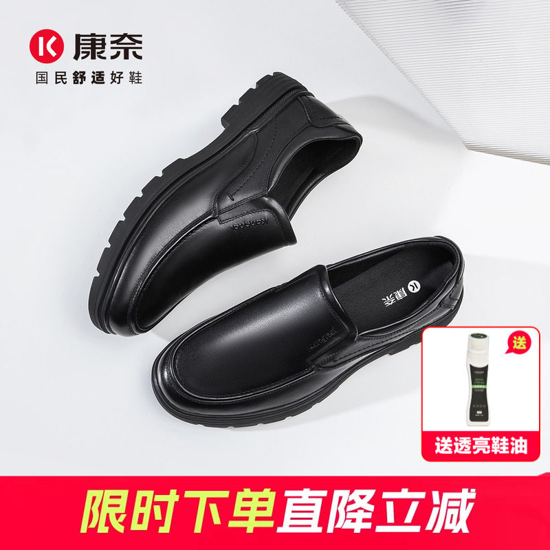康奈头层牛皮男鞋真皮商务皮鞋男软底工作鞋公务套脚一脚蹬爸爸鞋