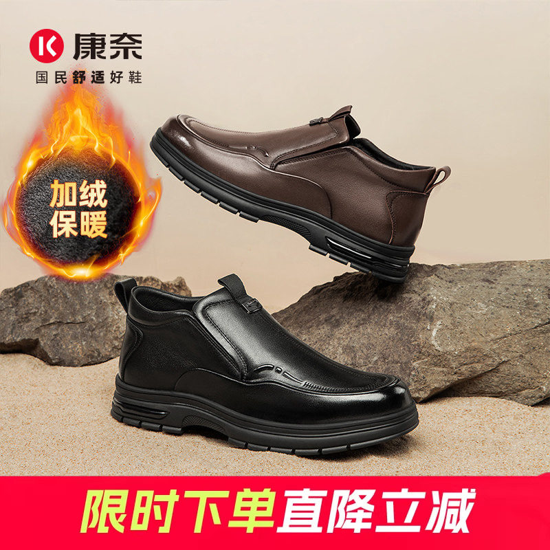 康奈男鞋通勤新款冬季加绒保暖商务休闲皮鞋男中老年爸爸棉靴短靴