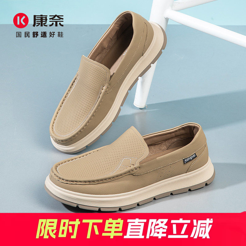 康奈男鞋休闲皮鞋男士软底爸爸鞋真皮通勤轻质一脚蹬男镂空乐福鞋